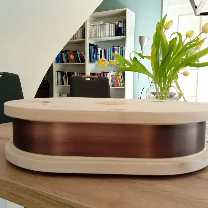 Zum Pflegen des Zirbenholzes verwenden Sie am besten ein leicht feuchtes Tuch aus Mikrofaser. So vermeiden Sie Kratzer in das weiche Holz zu reiben. Das Tuch sollte nicht zu nass sein und auf Spülmittel sollte gänzlich verzichtet werden. Wir haben uns bewusst dazu entschieden, das Holz unbehandelt zu lassen, damit die wohltuenden ätherischen Öle voll zur Geltung kommen. Ein Nachdunkeln des Holzes kann naturbedingt vorkommen.Kupferring